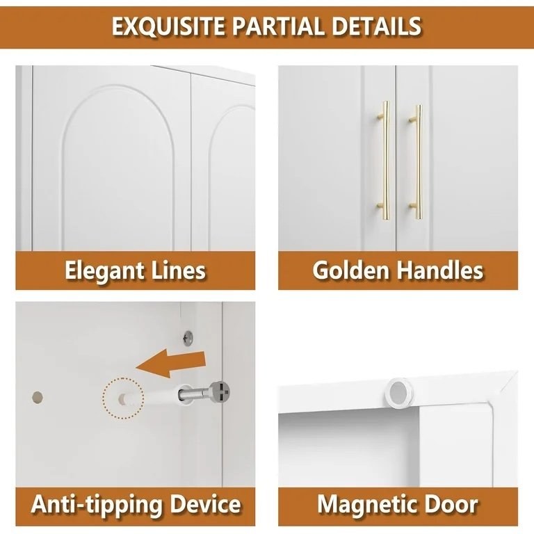 STYLISH APPEARANCE: Simple white lines make the white storage cabinet more elegant and beautiful, and complement various decorative styles