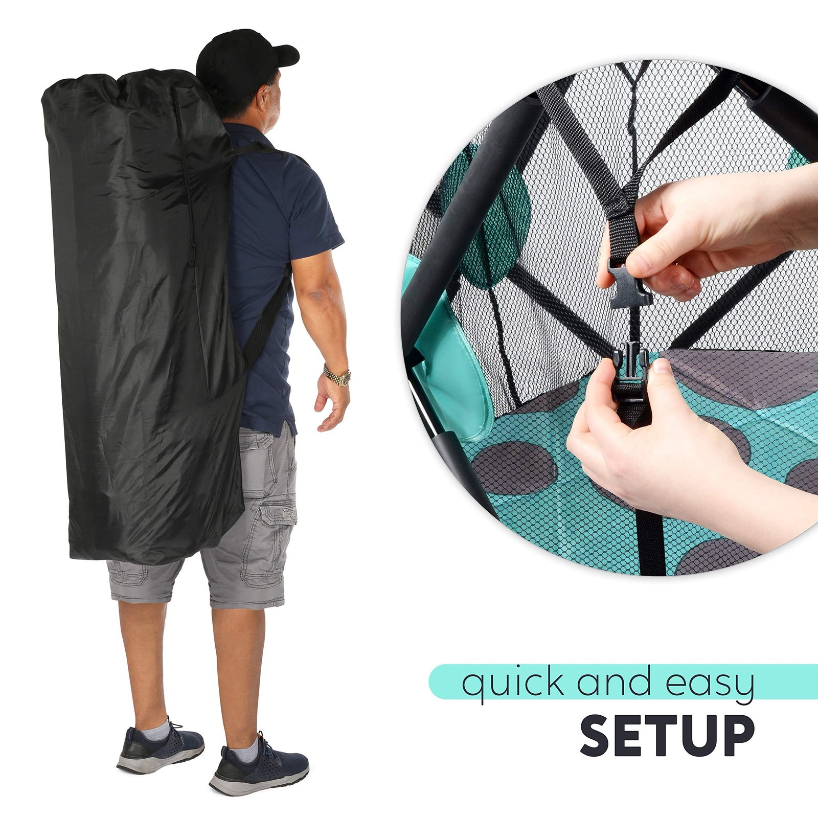 Portable And Great For Travel: This pop-up playpen is compact, lightweight and sets up in seconds- great for hotel rooms, camping, beach trips, and visits to Grandma. Included carry bag makes transportation a breeze!