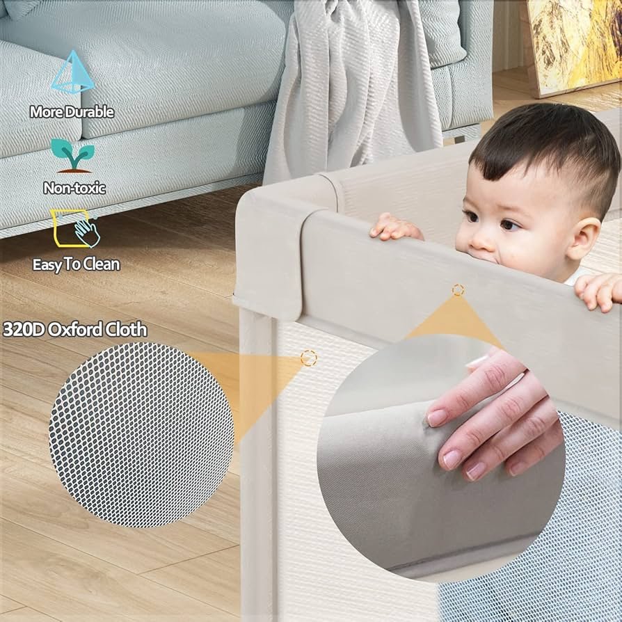 Extra Large Play Yard – Mloong big toddler playpen with mat provides more than 24.2 sq. ft safety playing space. Large enough to accommodate the baby and mother to play together. If you have several kids at home, you can also put them together in the baby fence play area.