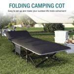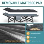 PREMIUM MATERIAL:The camping cot’s fabric is made of double-layered 1200D Oxford fabric for superior strength, water resistance, and ease of cleaning.