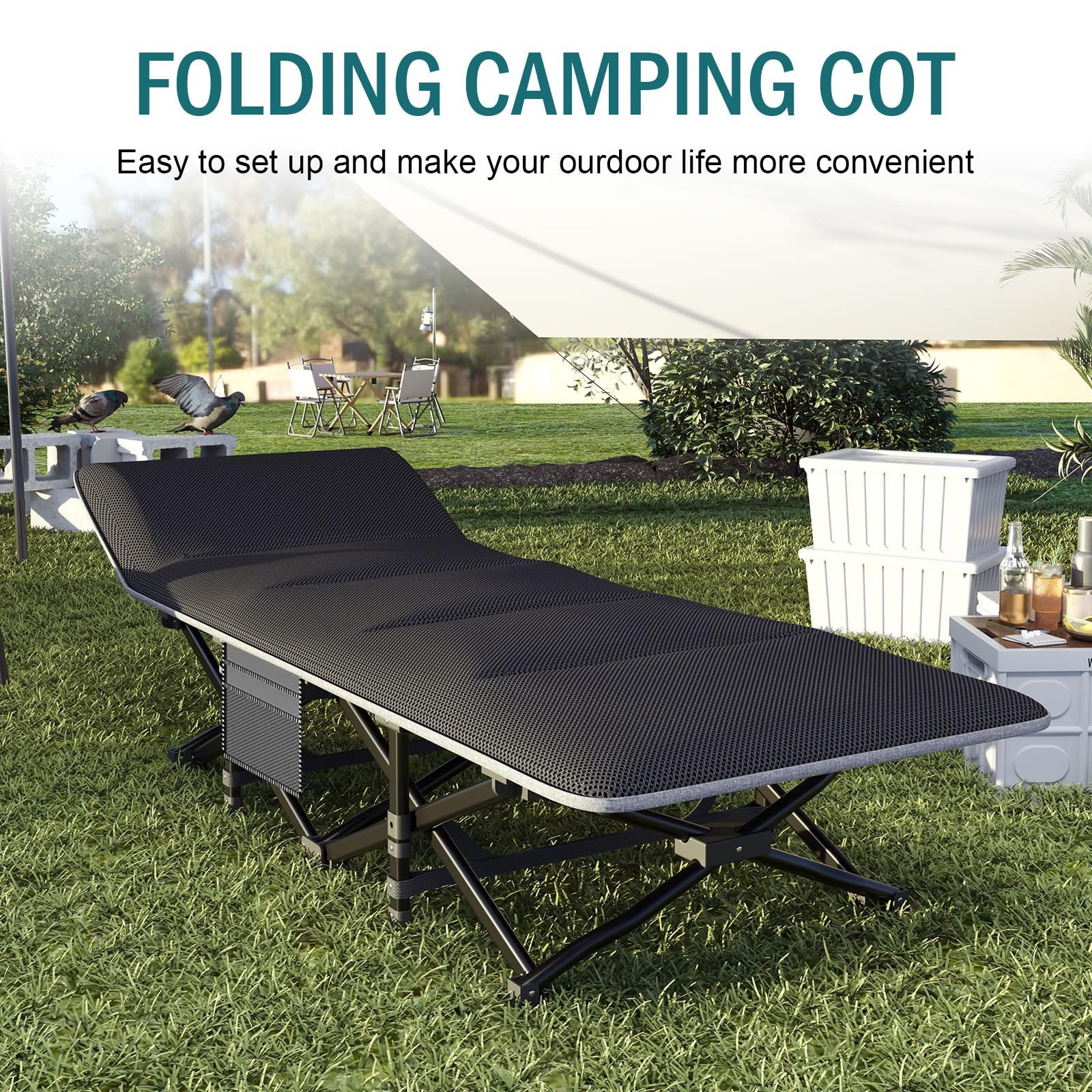 Mopaicot Camping Cot for Adults, Folding Bed with Comfortable Cushion