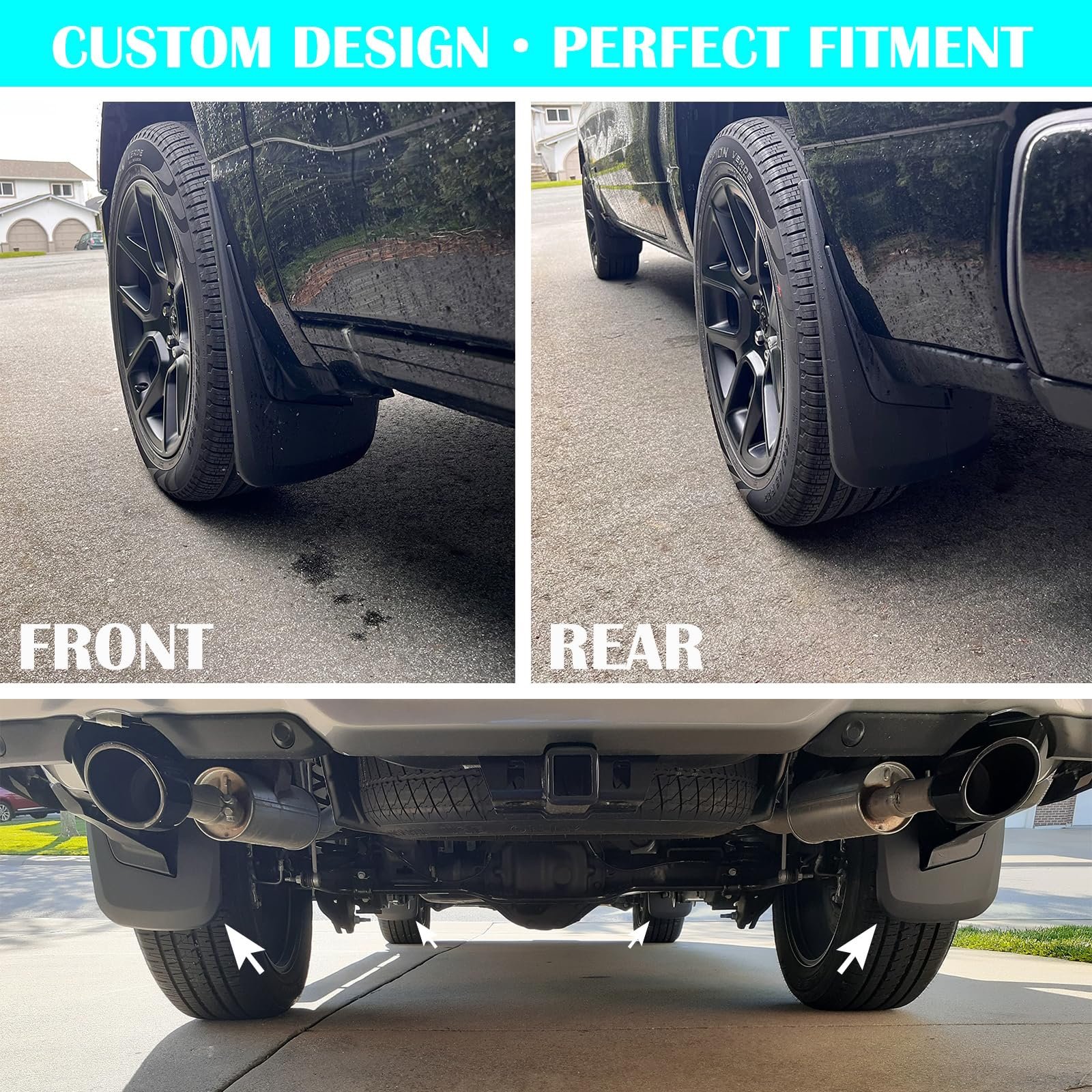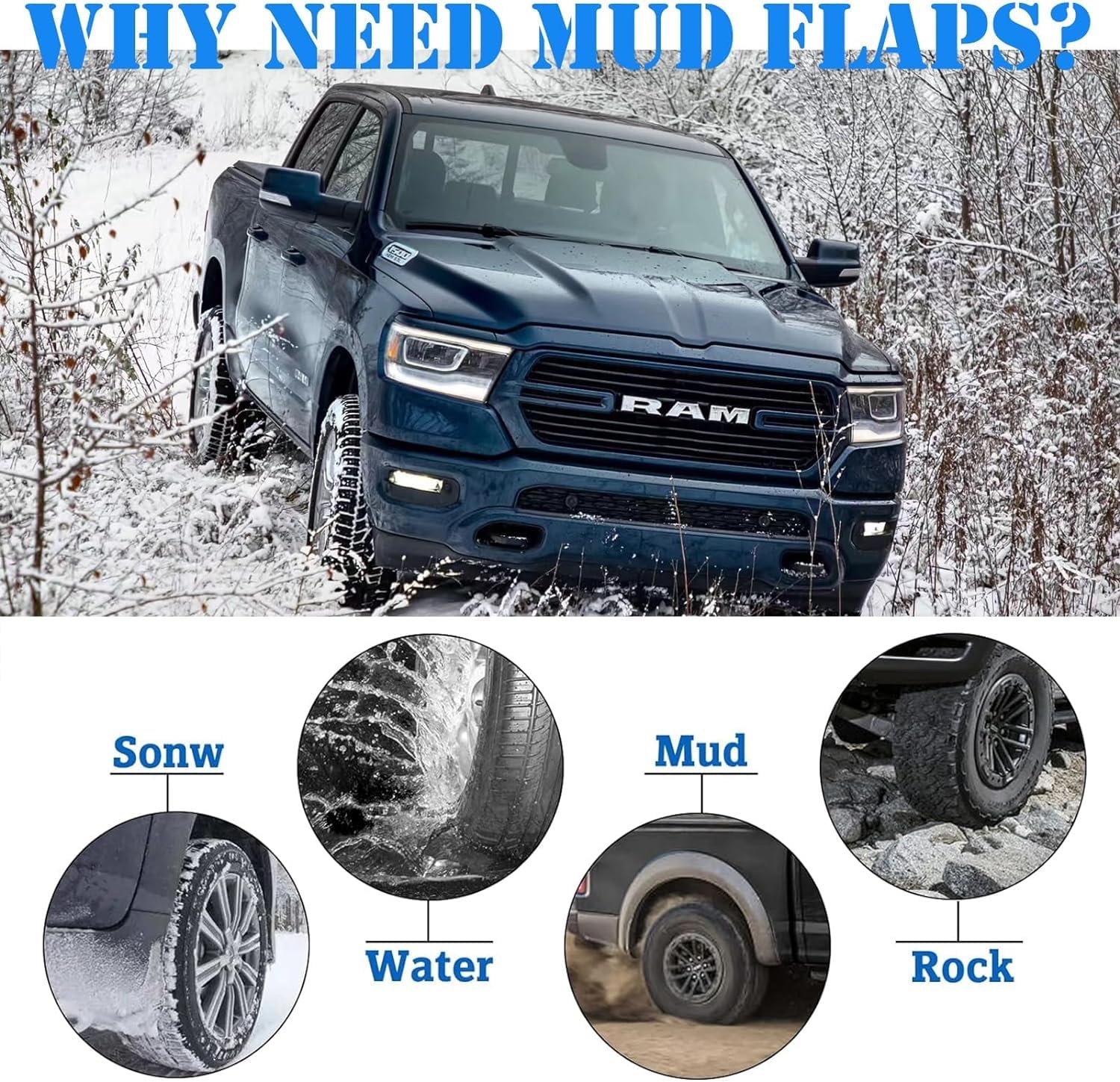 【Upgraded】 for Dodge Ram 1500 mud flaps perfectly fit for 2019 2020 2021 2022 2023 2024 new body style (model without Fender Flares) (Non-Classic Model) (Not for TRX model), match with original car hole, no Need To Drill Holes, no need to remove the wheels