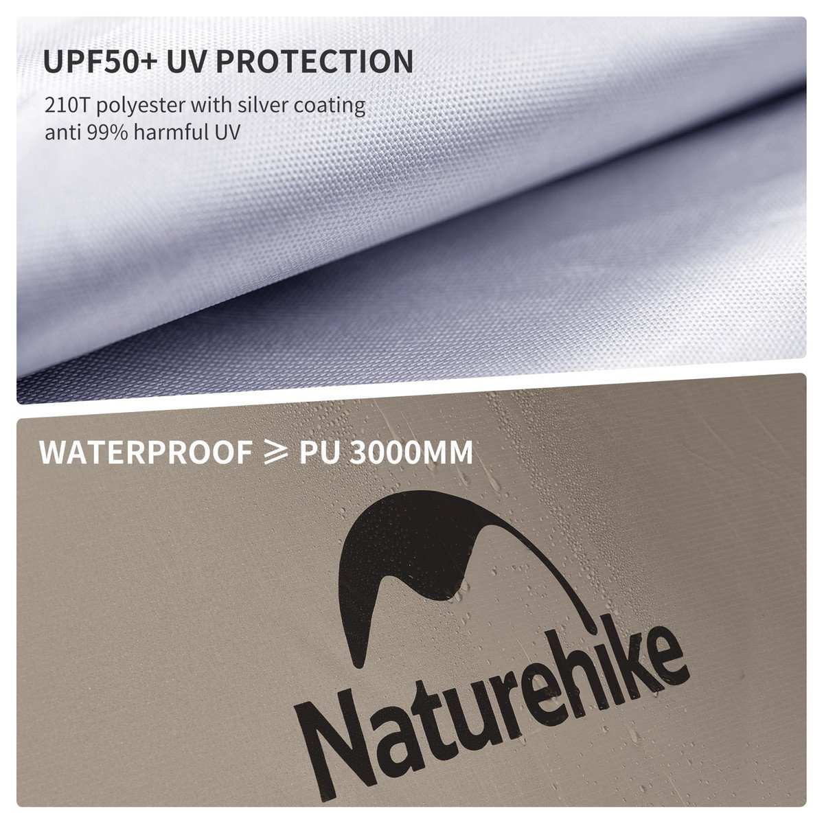 Waterproof & UPF50+ Sun Protection: the tent is made of 210T Polyester with silver coating, which can anti 99% harmful UV, and it has a good performance of waterproof, up to 3000mm.