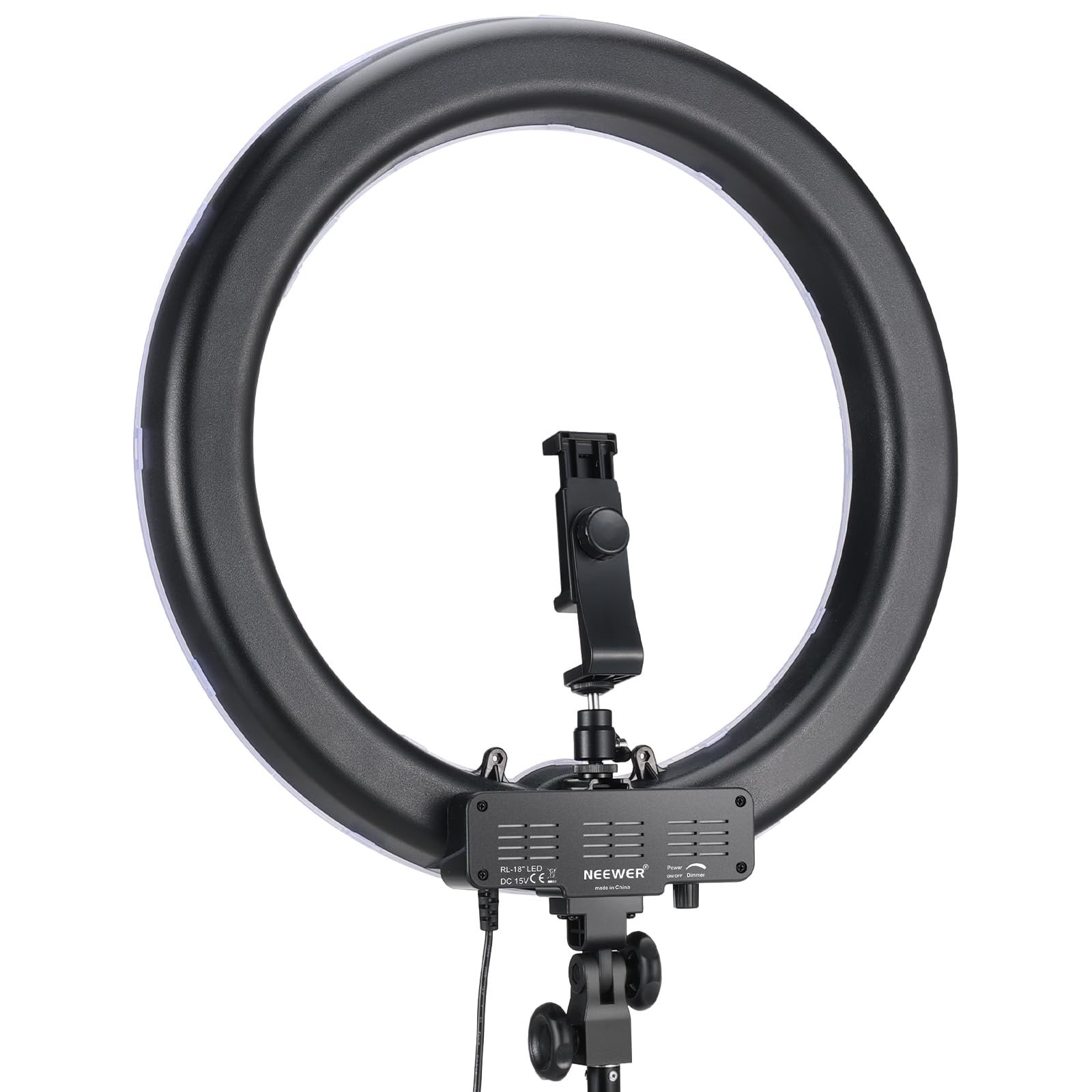 【New Version 18″ 55W High Brightness Ring Light】 The RL-18 features 240 quality LEDs, providing professional lighting with wide coverage and delivering an impressive brightness of up to 5500 lux at 0.5m. It enables 0-100% dimming with a high CRI of 95 to accurately reproduce true colors and enhance beauty. Ideal for live streaming, makeup tutorials, video recording, and other self media creation