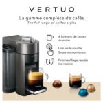 The Nespresso Vertuo offers a full range of coffee capsules, from an intense espresso to a large mug, all at the touch of a button and with a smooth crema.