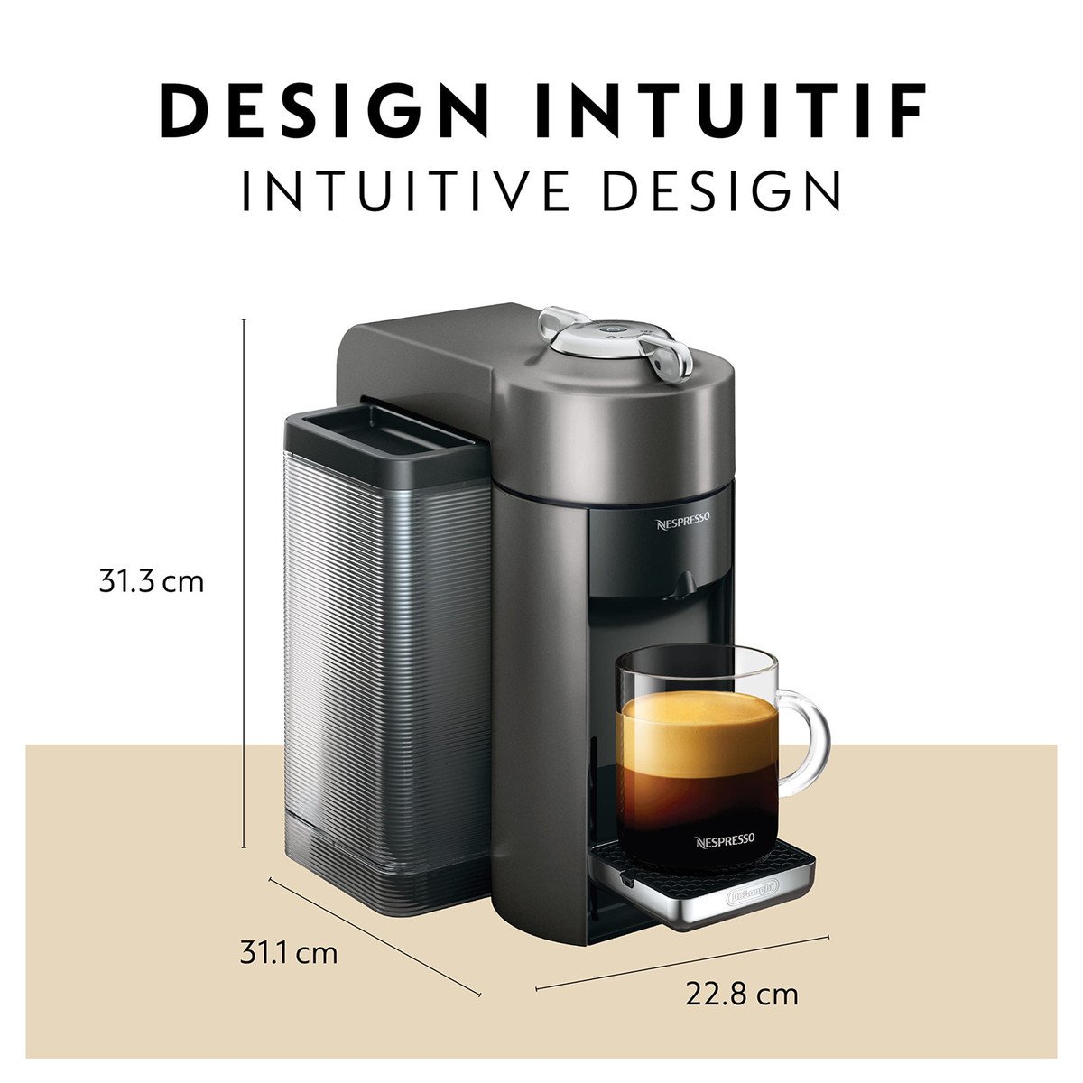 Versatile cup sizes: One Nespresso coffee machine for 4 coffee sizes: Mug/Coffee, Gran Lungo, Double Espresso and Espresso, via 3 different coffee capsule sizes.