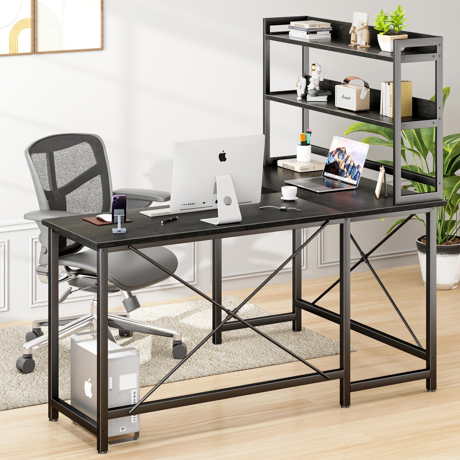 - 【Modern Style Design】The sleek and modern design of this l desk with shelves adds a touch of elegance to any space, making it a perfect addition to your home or office. Tips: 1. Cannot be installed in a straight line;2. The bookshelf can only be installed on the left side