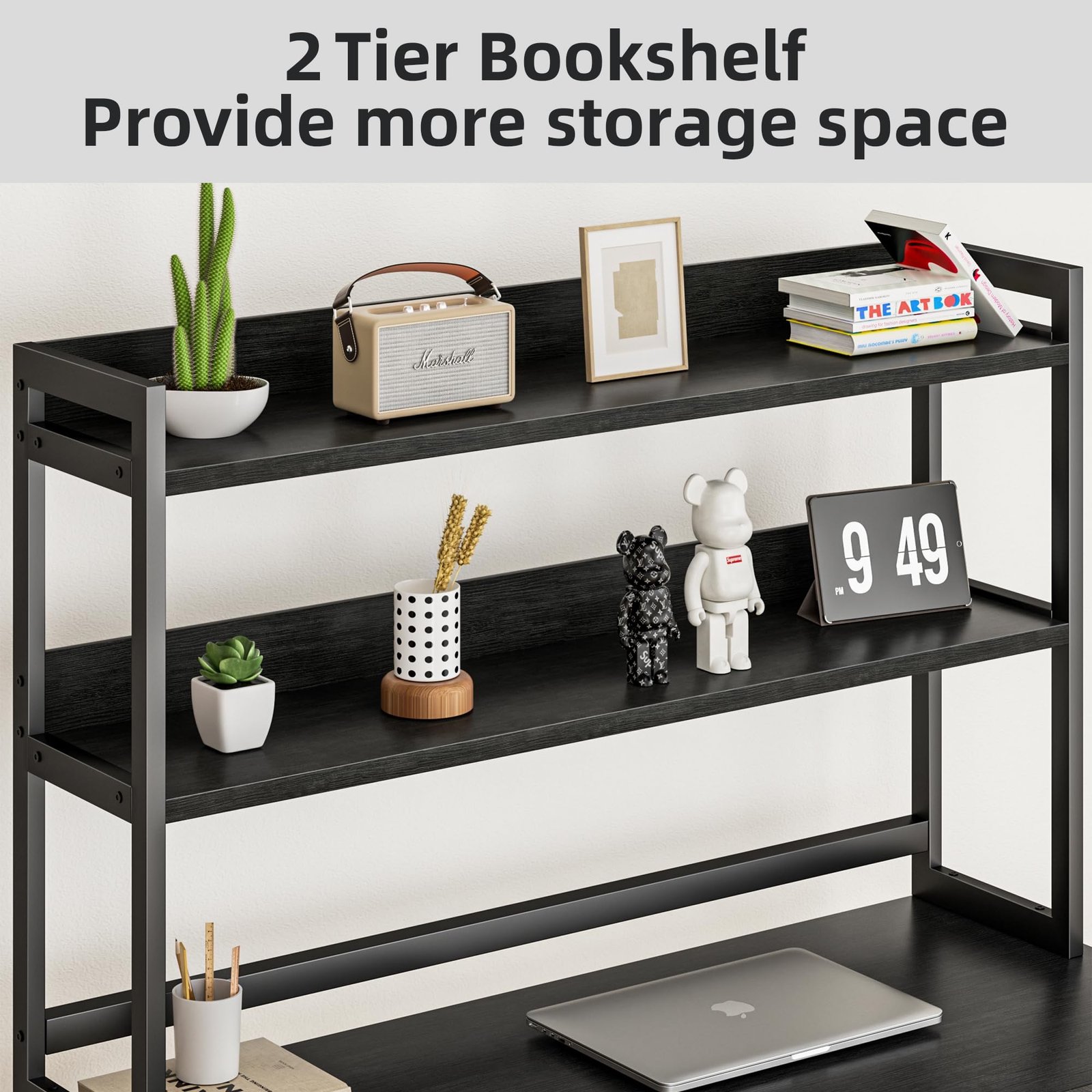 - 【Super Sturdy and Stable】Crafted with high-quality materials ① thicker steel pipe, ② thicker wood board, this desk with hutch is designed to be sturdy and stable, which will never wobbling and ensures satisfactory work experience