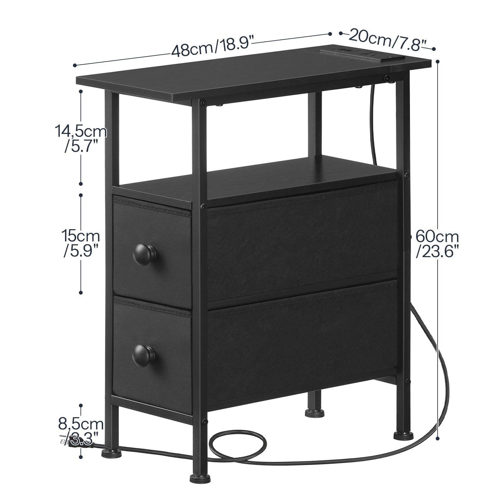 One-Stop Charging Solution: Equipped with 1 AC outlet and 2 USB ports, this skinny end table keeps your phone, tablet, and laptop charged up with hassle-free, on-the-go convenience, enhancing your daily life with ease