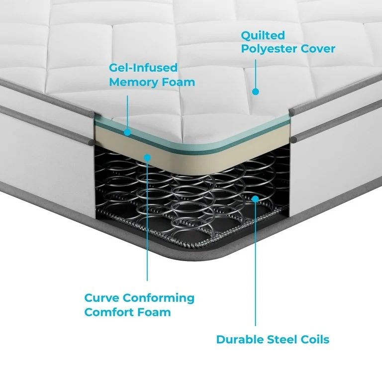 • ULTIMATE COMFORT: A layer of soft gel memory foam conforms to your curves and aligns the spine, distributing body weight evenly