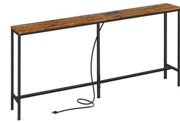 ORGANIZED STORAGE: Two open shelves below the top surface are designed for housing the media equipment, with ports in the back for threading cords to the wall outlet. A central drawer folds down to reveal space to hold games, controls and other entertainment center items neatly stowed out of sight.