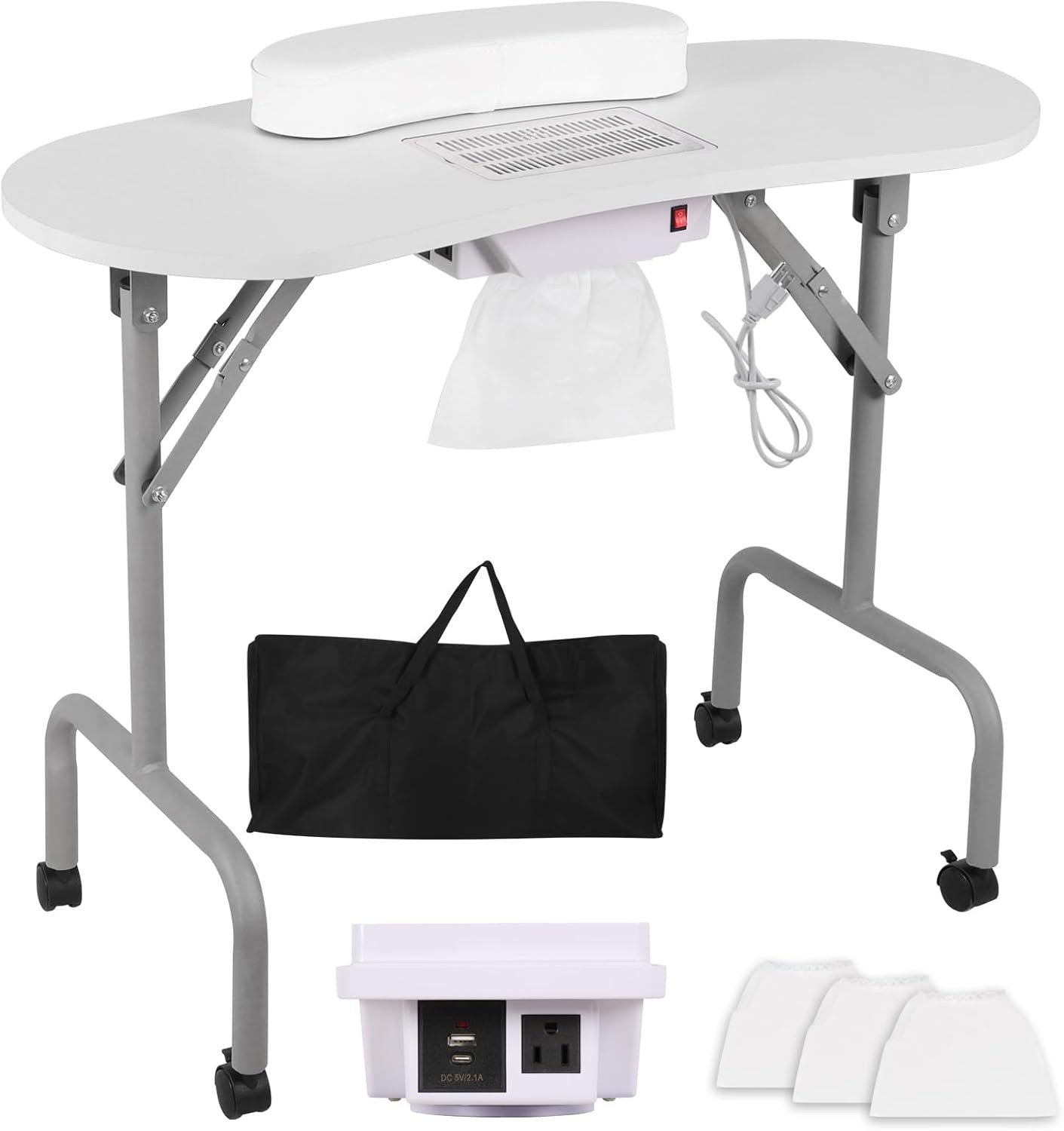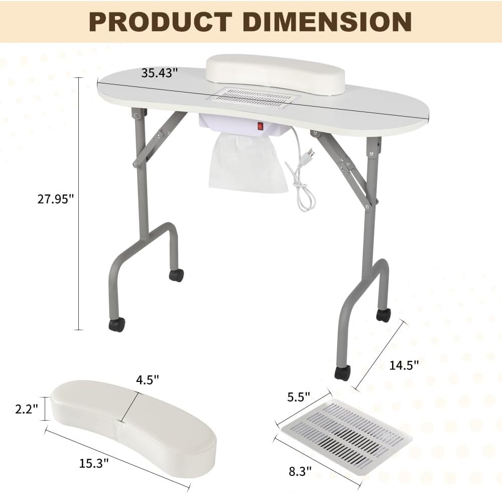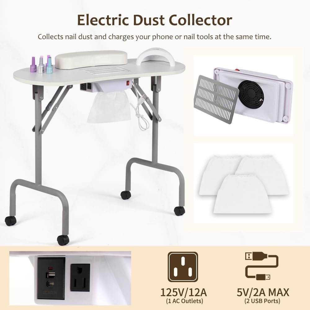 New Portable Manicure Table Nail Desk with Charging Station & Dust Collector, Foldable
