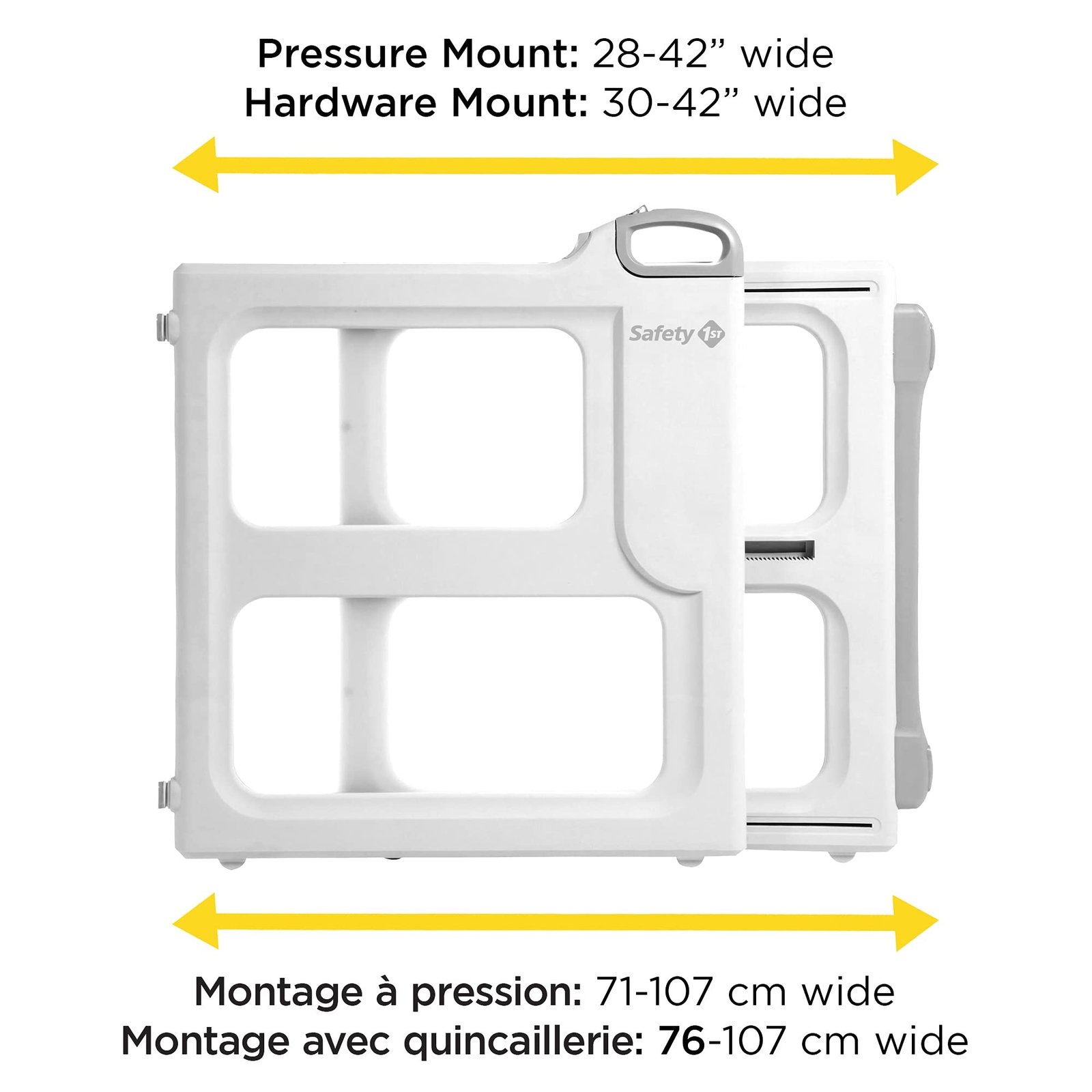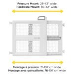 - Product 2: Versatile 2-in-1 design: Hardware or Pressure Mount. Pressure Mount: 28″-42″ wide, 26″high. Hardware Mount: 30″-42″ wide, 26″ high.