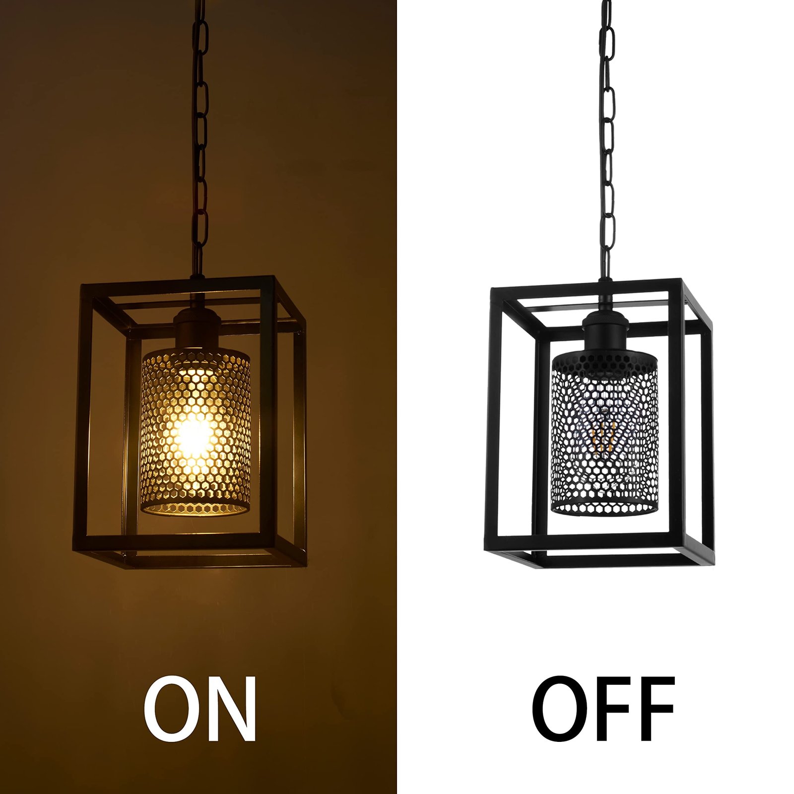 - 🆕【Height Adjustable】 Pendant Light shade size 9″ H x 7″ W x 7″ D Hanging chain MAX 60’’. Can be installed on a sloped ceiling. The length of the metal chain can be easily adjusted according to needs, which is convenient for hanging at an appropriate height.