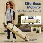 EASY TRANSPORT – The roll-up bag, made of 300 x 600D Oxford fabric, comes with 2 wheels, 2 strong base legs and 2 soft handles, portable for your on-the-go lifestyle; Designed with practicality in mind, the storage bag features a large side pocket; Keep ground nails and ropes organized before setting up or pack essential items like snacks, drinks or books for your outdoor leisure; Whether camping, hiking, ropes organized before setting up or pack essential items like snacks, drinks or books for your outdoor leisure; Whether camping, hiking, ropes organized before setting up or pack essential items like snacks, or bound for the beach, this pop-up tent will be your ideal partner