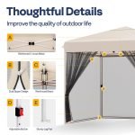 Premium Material – The screened gazebo tent is made of 210D silver-coated oxford fabric with waterproof stickers, offers UPF 50+ protection and CPIA-84 flame retardant standards; It reflects 99% of harmful sunlight, ideal for outdoor use; The powder-coated steel frame is resistant to scratches, rust and corrosion; Note: It is recommended to return the tent in strong winds and heavy rain to extend its service life