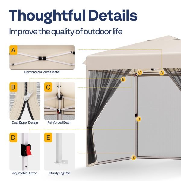 Premium Material – The screened gazebo tent is made of 210D silver-coated oxford fabric with waterproof stickers, offers UPF 50+ protection and CPIA-84 flame retardant standards; It reflects 99% of harmful sunlight, ideal for outdoor use; The powder-coated steel frame is resistant to scratches, rust and corrosion; Note: It is recommended to return the tent in strong winds and heavy rain to extend its service life