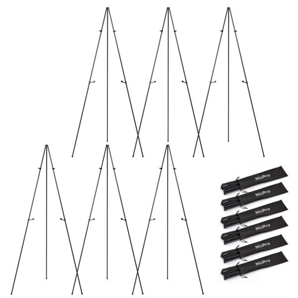 - 【High Quality】 : Nicpro 6 pack black easels for display are constructed with lightweight tubular steel metal for extra stability and has a durable modern gloss black powder coated finish & non-slip rubber feet.