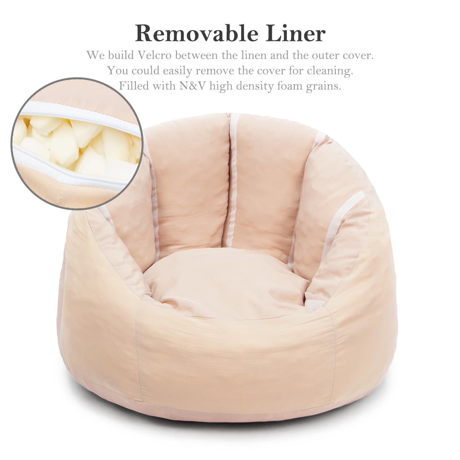 Perfect Size: The N&V small foam sack is a perfect addition to your living room, bedroom, basement, gaming room or home theater. Measuring 31”*35”*27” with 19” seat depth, the bean sack sofa is generous enough for a 6 feet person. Get this bean bag chair to join your living room seating group or spruce up an unused corner of the your sweet home.