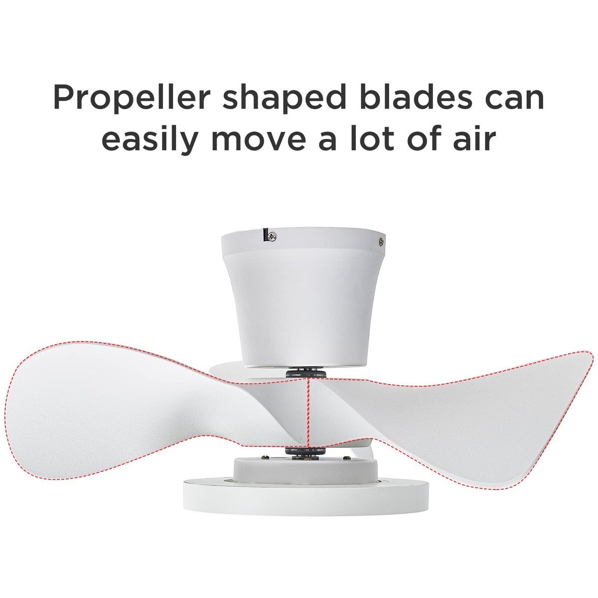 ?Small Size and Large Air Volume?The diameter of this small ceiling fan is only 22 inches, which is very space-saving, but the propeller design of the fan blade makes it easy to move a lot of air.