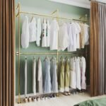 【Sturdy & Durable】This garment display rack is made from heavy duty iron pipe and electroplated with protective coat to enhance corrosion resistance and avoid rusting, scratch and wear resistant. It can be firmly mounted on walls and floors to ensure the stability of the closet system.