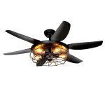 Black Ceiling Fan with Light: This rustic ceiling fan with light has 6 blades and 5 light base for optimal lighting (bulbs not included). Its hollow-up caged design is convenient for changing light bulbs and provides greater illumination. Choose from 5? or 10? downrods to match your room