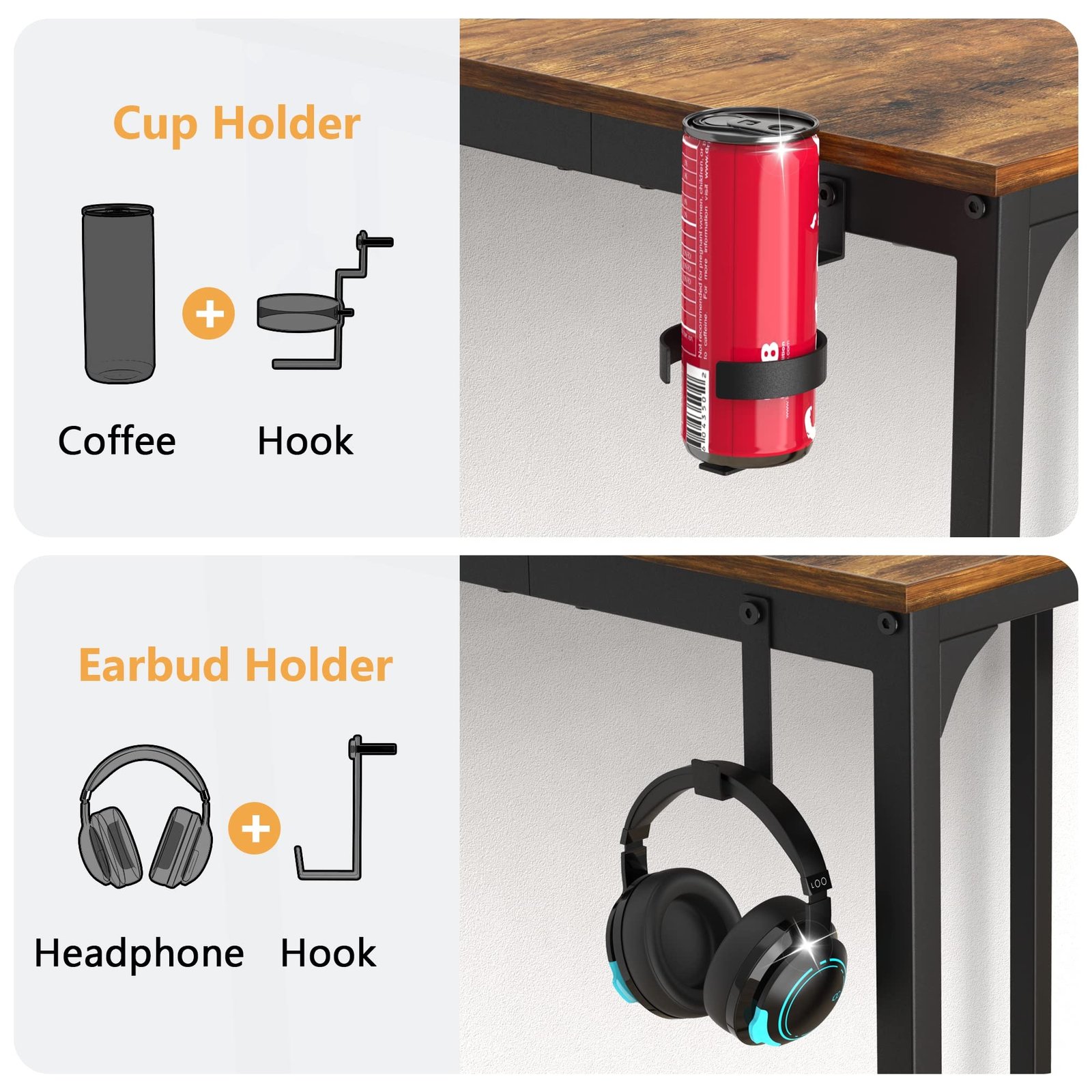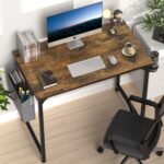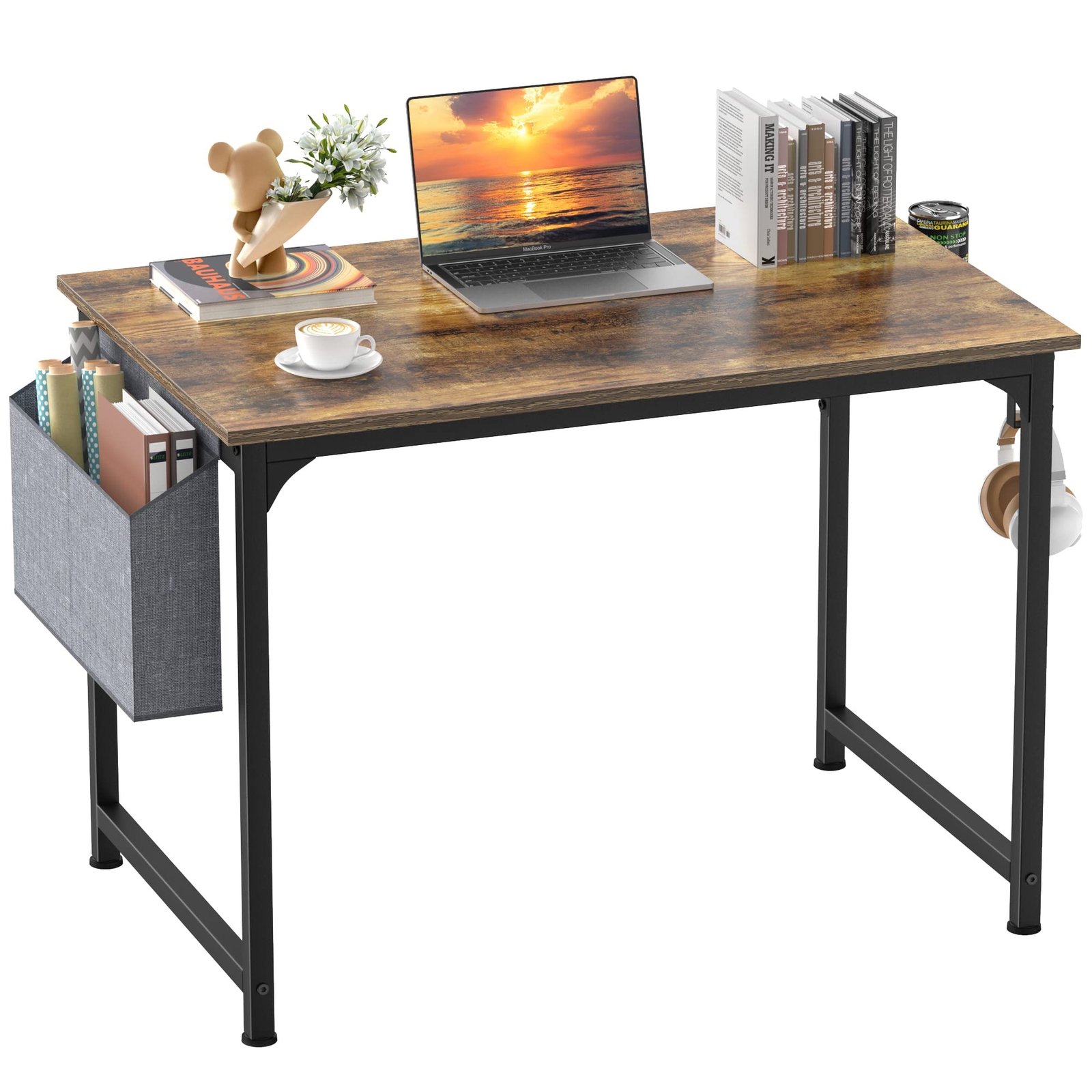 - [SPACE-SAVING]: This computer desk is equipped with storage bag, headphone hook, and cup holder. You can store your books, notebooks, pens, etc. Headphones and water cup can also be kept within reach. These designs keep the desktop in a neat and tidy condition.