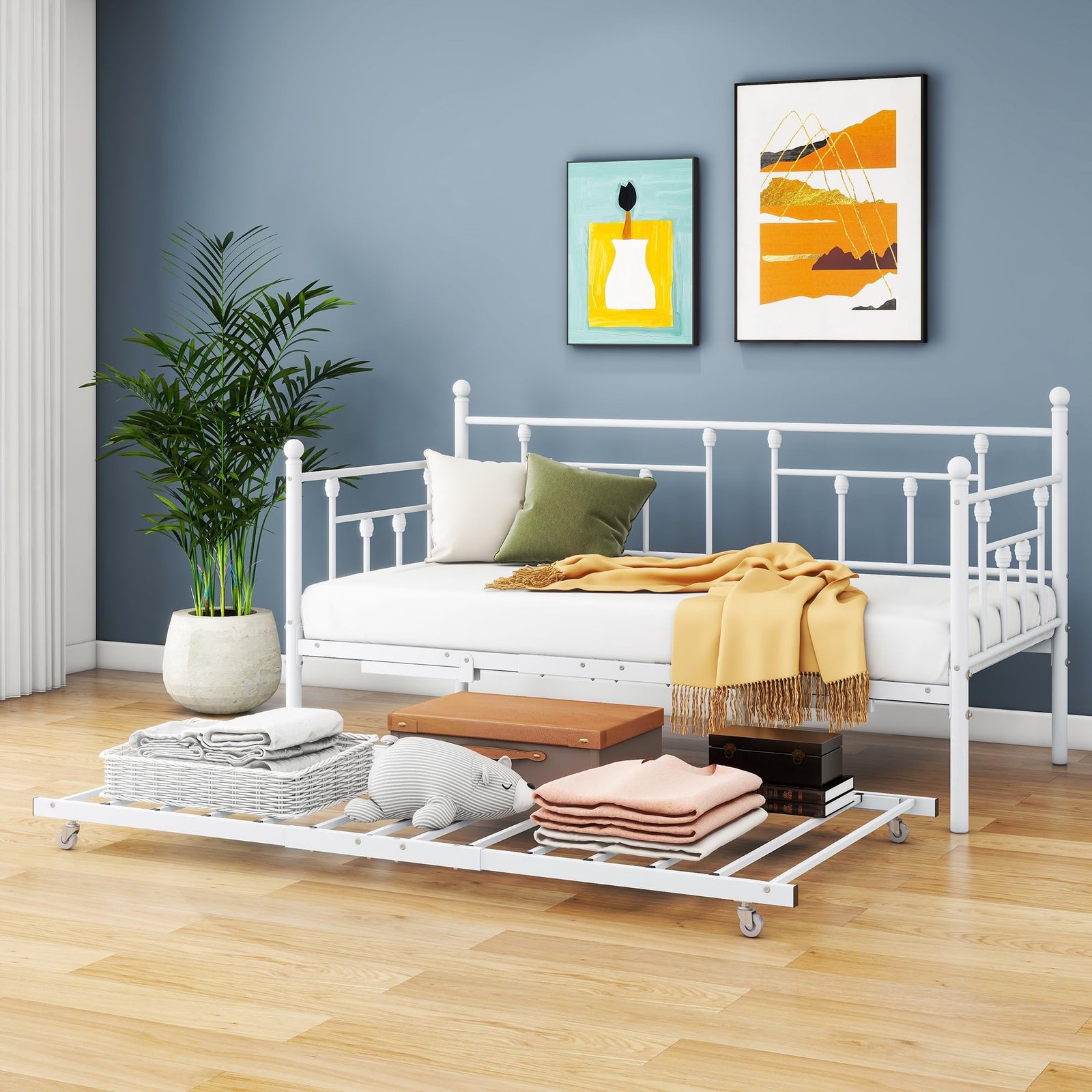- Assembly Easy As A Breeze: This Twin metal daybed and trundle frame set comes with all the necessary parts, hardware and detailed instructions for easy set up in a short time. We provides a one-year quality warranty service. We have perfect after-sales service. If there is a problem with the quality of the product, you can contact our customer service at any time, and we will reply within 24 hours.