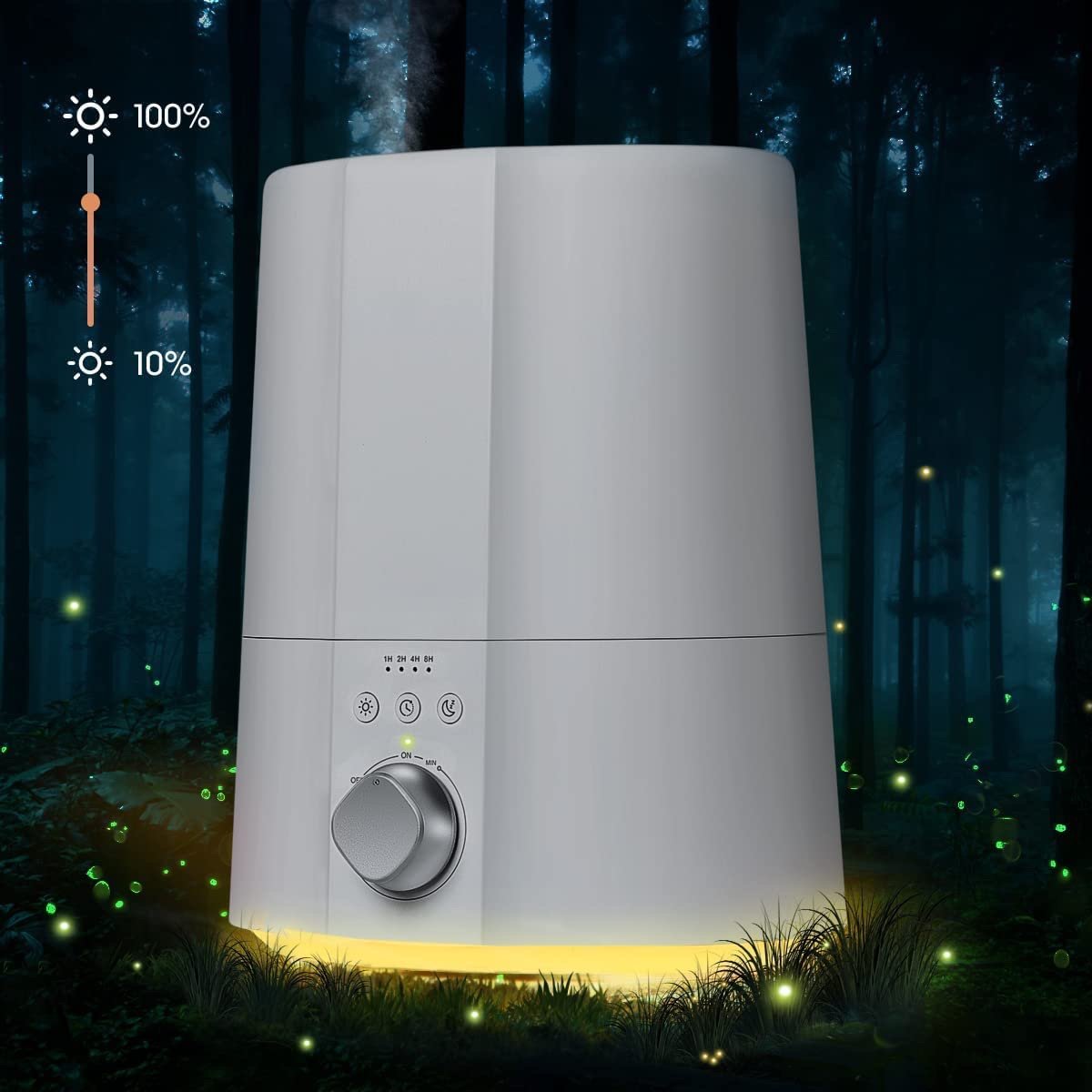 【Optional Night Light】: Offers soothing glow for maximum relaxation; and you can also customize the level of this easy clean humidifier by pressing and holding the Night Light Button for 1.5 seconds (Note: The night light is separately controlled.)