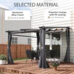 Outdoor Metal Pergola Information: Overall Dimensions: 116.9″ L x 116.1″ W x 76.8″-90.6″ H (297 x 295 x 195-230 cm). Assembly is required. Note: It is not recommended for use in extreme weather conditions like storms or high winds/rain.