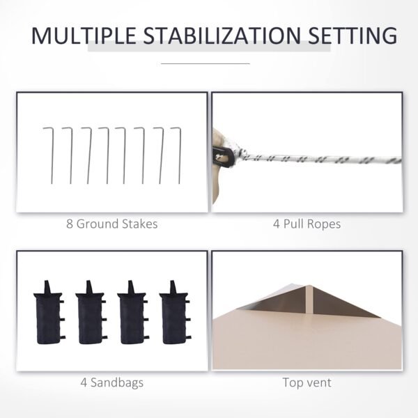 Sturdy & Stable Frame: with a powder coated metal legs with three adjustable height to ensure the party tent’s sturdiness and durability. Includes sandbags, ropes and stakes for added stability of the outdoor gazebo tent.