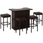 5-Piece Outdoor Bar Set: The bar height patio furniture coming with a glass bar table and 4 stools with appropriate height, makes your outdoor life more comfortable, and adds a great addition for indoor and outdoor use, such as poolside, garden and deck.