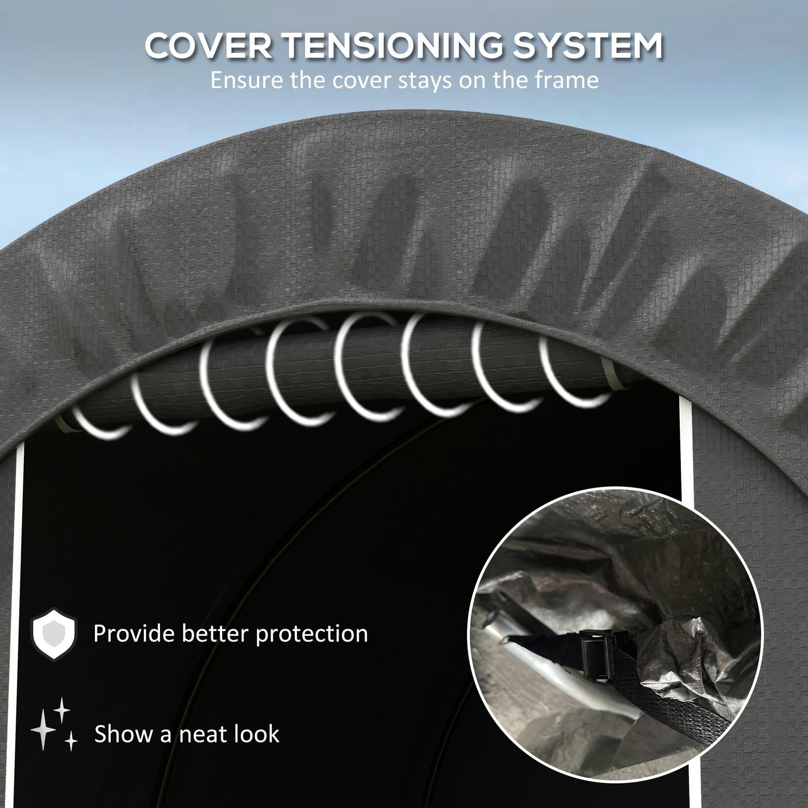 Multi-Functional: This outdoor shed is great for being a motorcycle shelter, bike shed, or storage shed for small lawnmowers, firewood, or garden tools. A large, zippered door makes it quick to seal your tools inside.