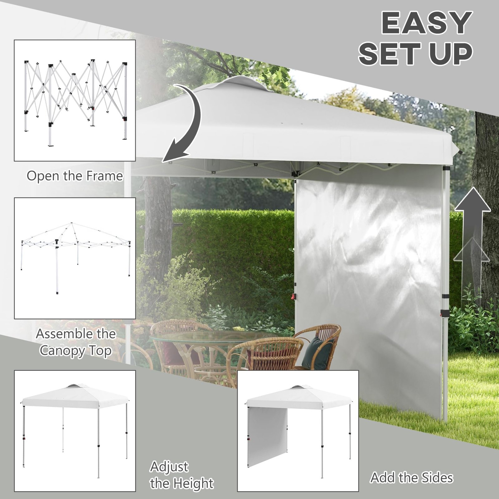 Easy Pop up Canopy: This instant canopy can be set up in minutes by just two people, without the need for any tools. It comes with a carrying bag, allowing you to easily take it to camping trips, cookouts, or garden barbecues.