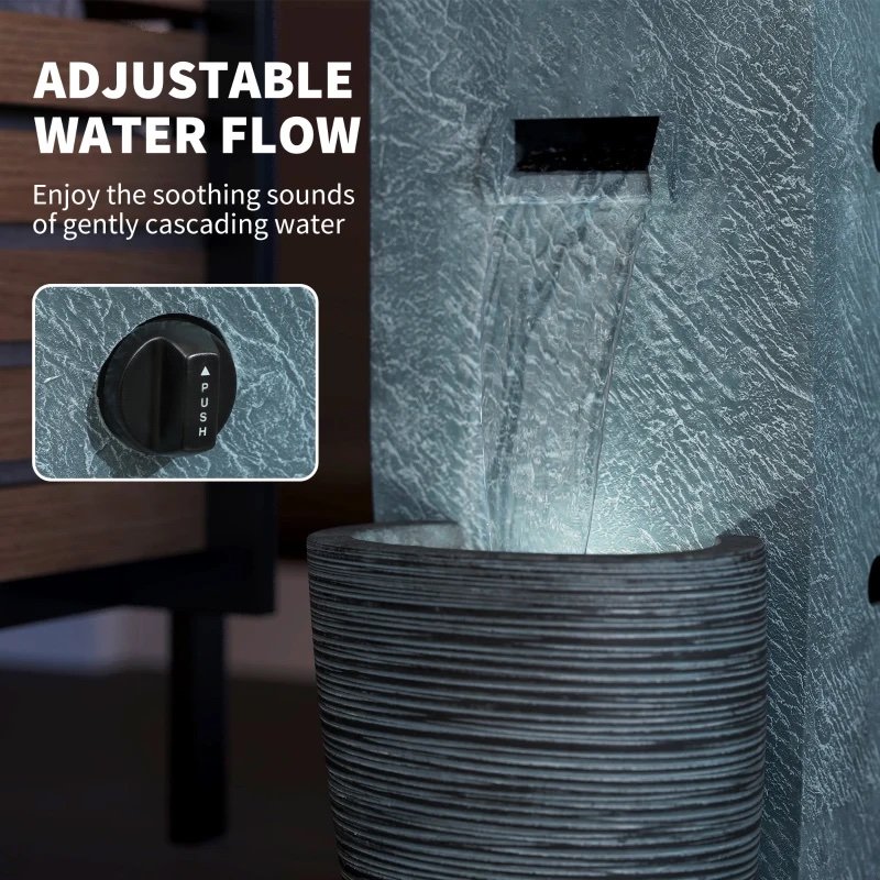 LED Light and Pump: The side waterfall fountain is equipped with a LED light and a pump for an adjustable water flow, creating a tranquil atmosphere great for evening relaxation
