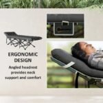 Ergonomic Design: This camping bed is expertly designed with an angled headrest that provides excellent neck support and comfort, allowing you to experience restful sleep or relaxation while lying down.