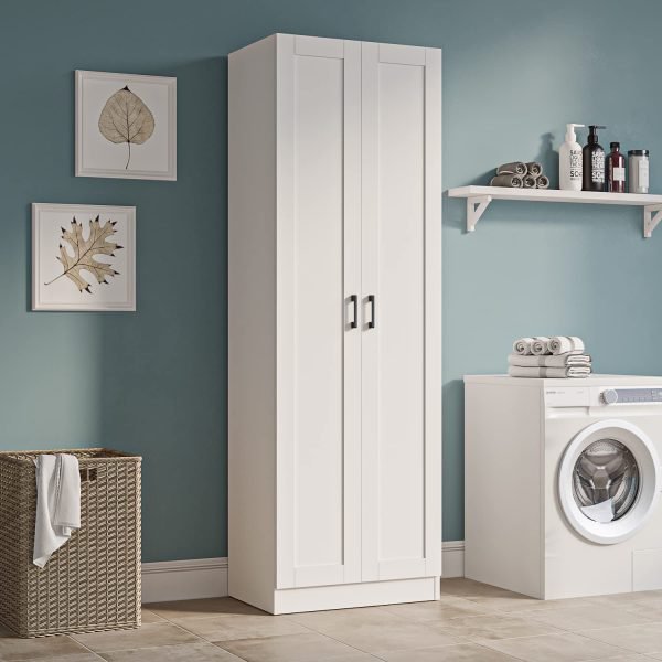 Thoughtful Interior Design: Unlock the doors of this cabinet to unveil a well-designed interior boasting four spacious shelves thoughtfully distributed across five levels. Among these, three shelves are customizable, allowing you to tailor the layout to fit your precise storage requirements.