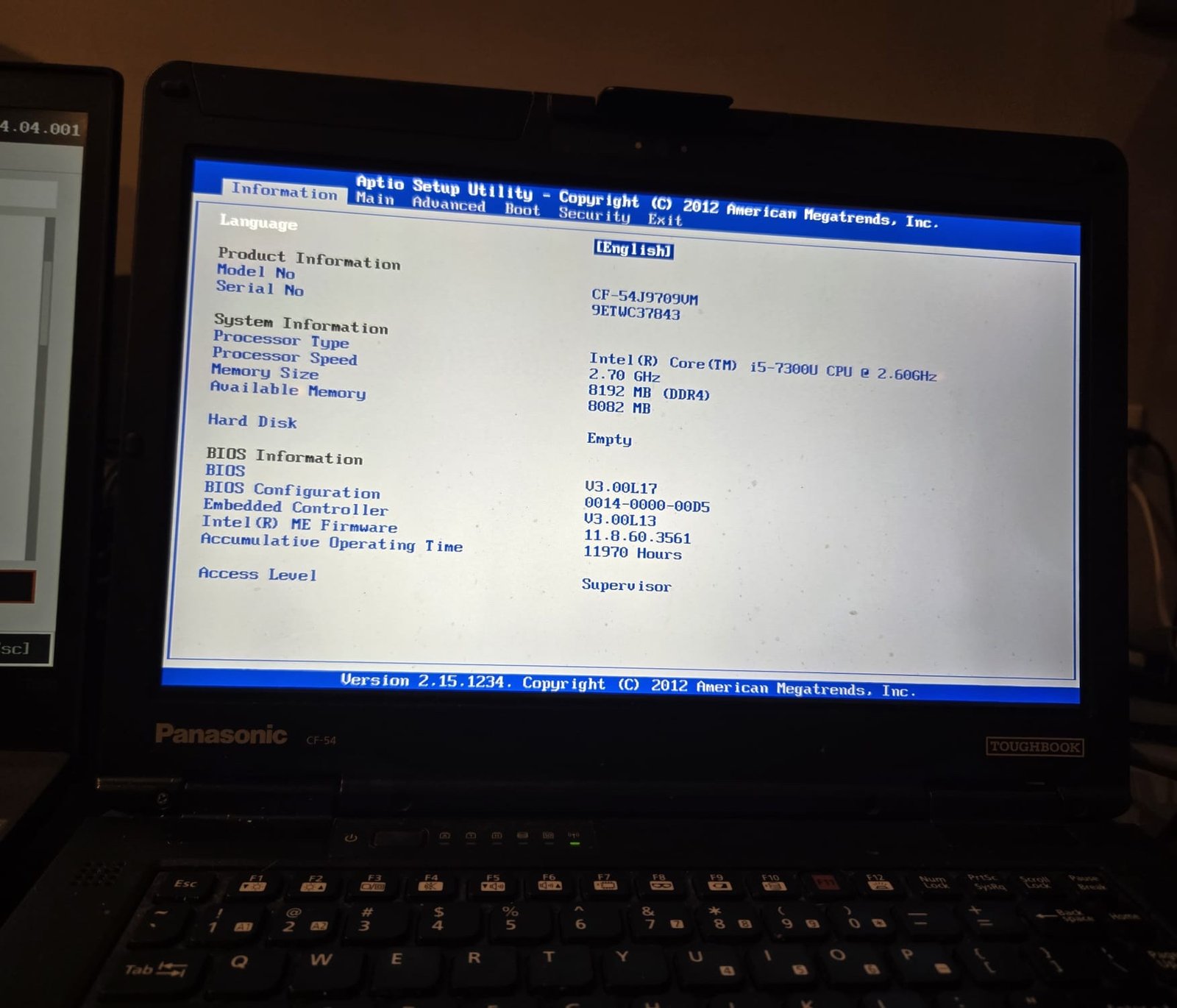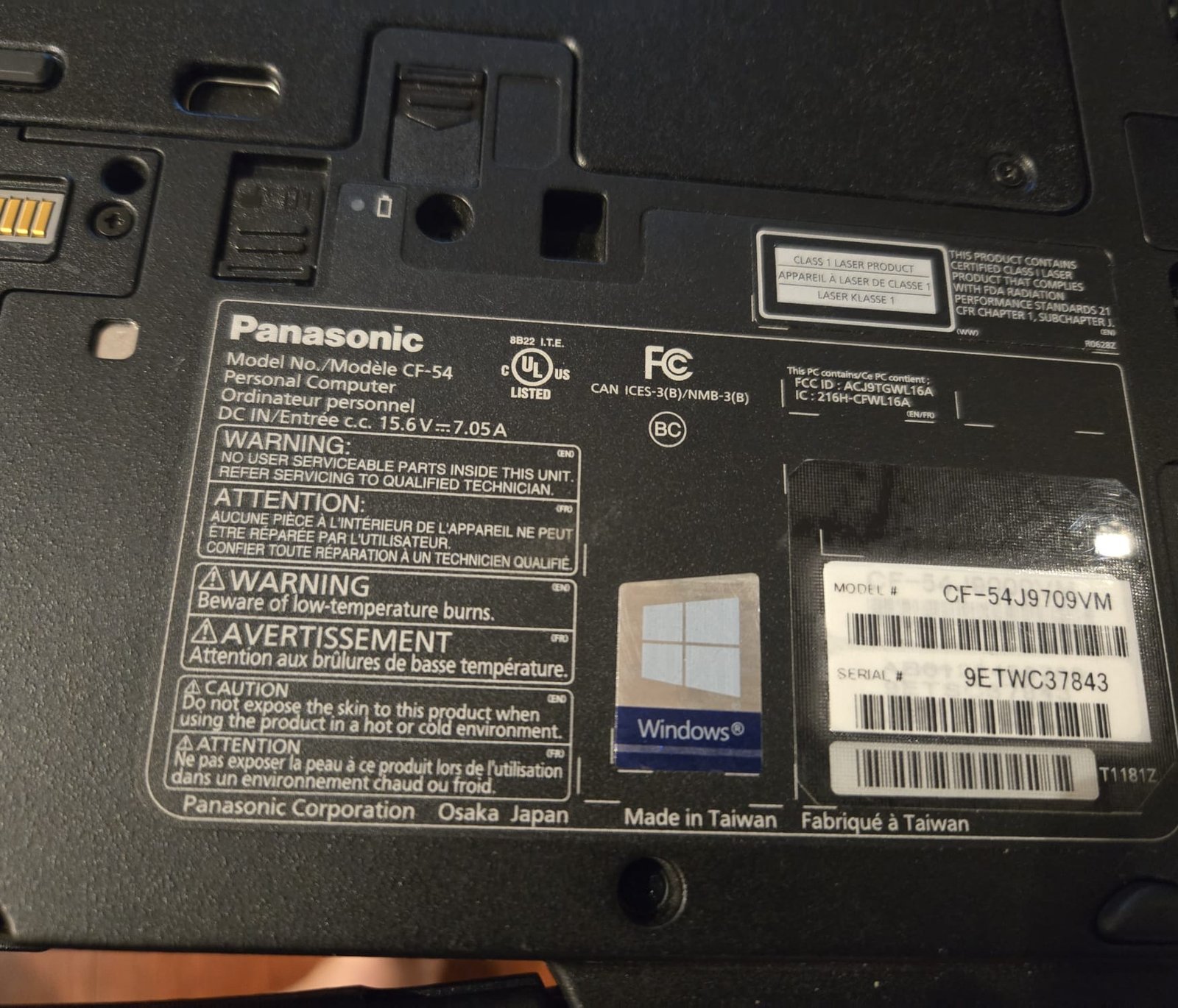 Panasonic Toughbook CF-54,Touchscreen i5-7300U CPU 2.60GHz No Hard drive/Window