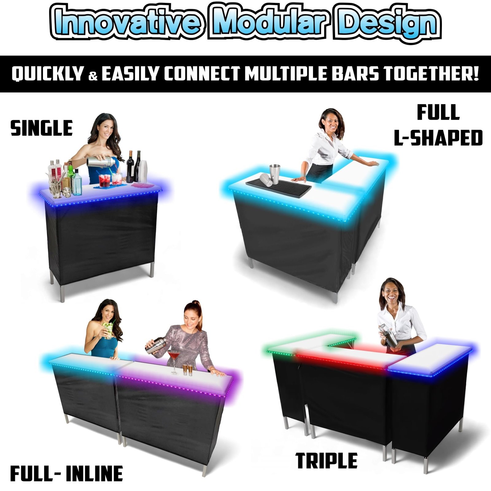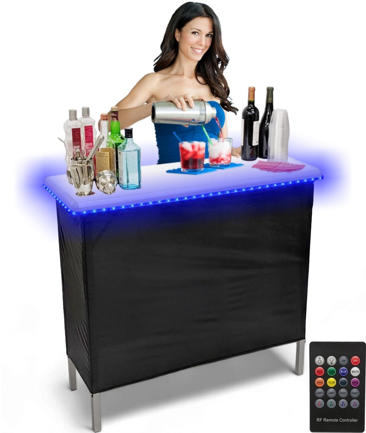 PARTYPONG Folding Portable Bar w/LED Lights, Wireless Remote
