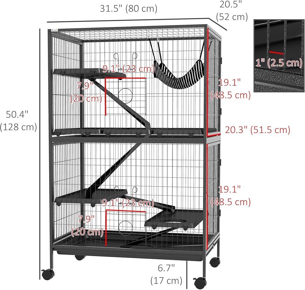 - Multiple Features: This deluxe home for your small pets provides multiple platforms and 3 non-slip ramps for easy up and down. A hammock is included for good resting. Bar spacing provides great ventilation. Latches are included for added safety.