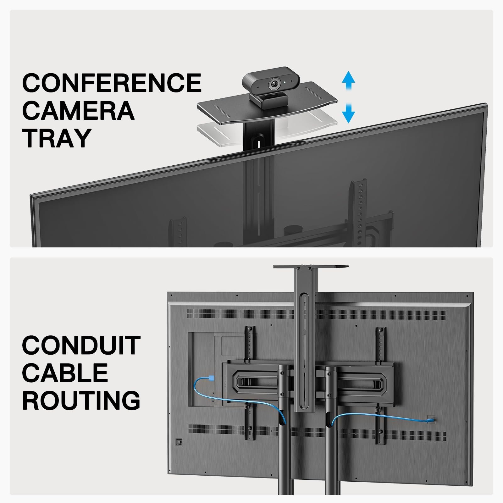 SPACE SAVER & CABLE MANAGEMENT: Rolling TV stand frees up floor space and increase your living space, plus the hollow vertical tubes allows you to run cables through them to keep wires organized and neat. No more messy cables or tangled wires