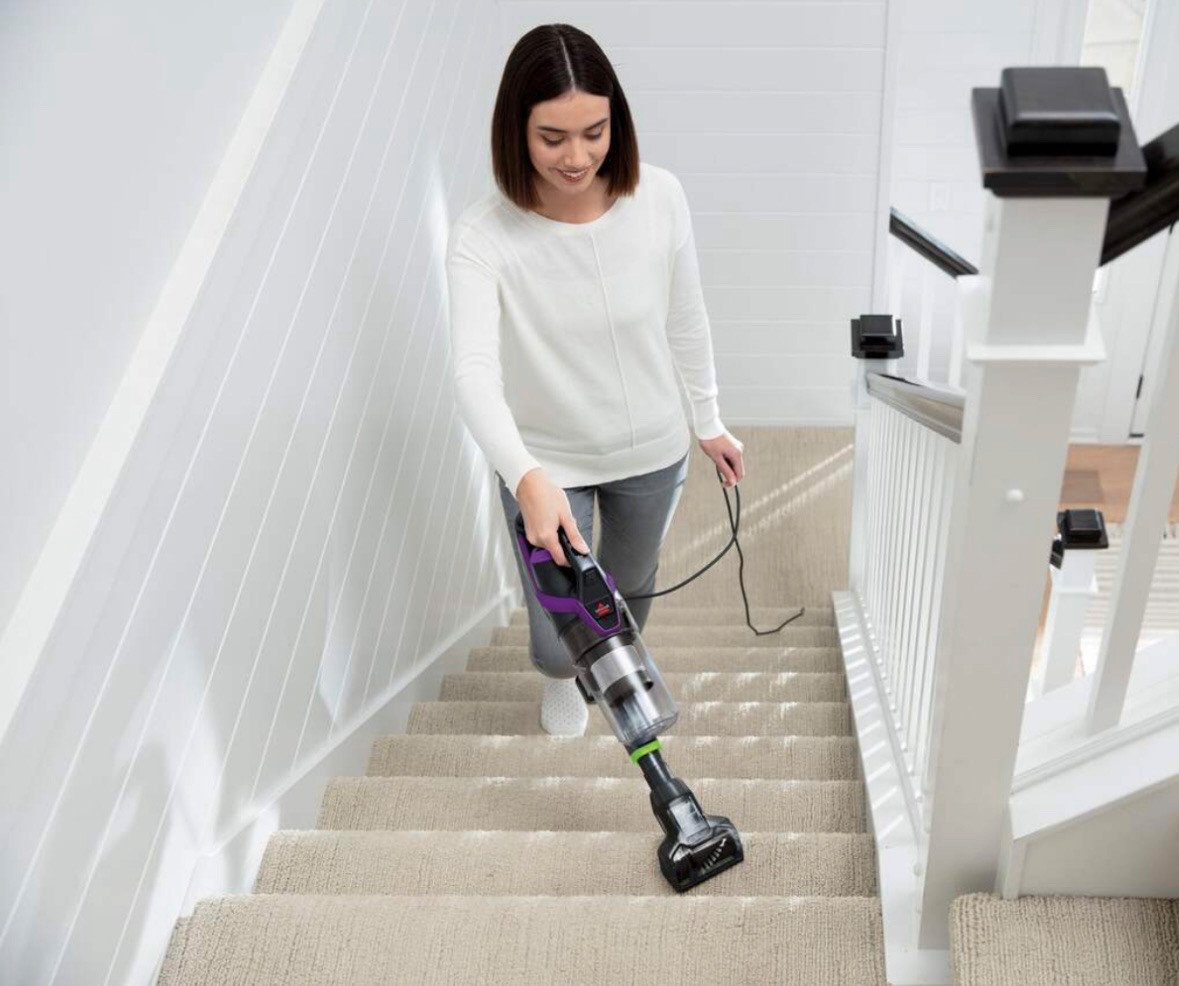 BISSELL? Pet Pro Hair Eraser Corded Stick Vacuum uses a versatile Tangle-Free* Brush Roll to pick up pet hair and debris