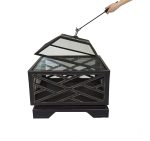 Strong sturdy mesh spark guard cover for added safety to prevent embers from escaping, plus 20-Inch poker to lift spark guard and to tend the firewood