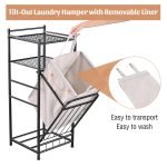 ?Convenient design?: The laundry storage bag with a long handle is removable so you can easily pull it out and carry your clothes. The sleek basket cabinet is easy to open and remove, making your laundry day a breeze.