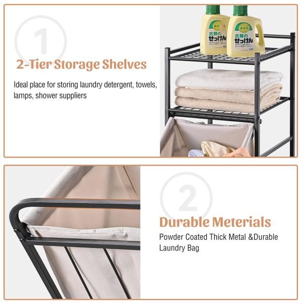 ?Multipurpose Laundry Cart?: Featuring a 2-in-1 design, the 2 shelves of the laundry basket at the top provide enough space to store laundry supplies, toiletries, fragrance or decoration. The 65-liter laundry basket provides a large capacity for your clothes and towels. Turn chaos into order.