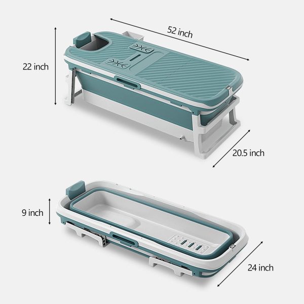 Separate Family Bathroom SPA Tub: The unfolded size of adult portable bathtub is 54.3x22x20.5 inches. The bottom part is 24″x9″. The 52 inch bathtub is spacious, fits height under 6.2ft and large capacity up to 220lb, large enough o accommodate an adult or family use