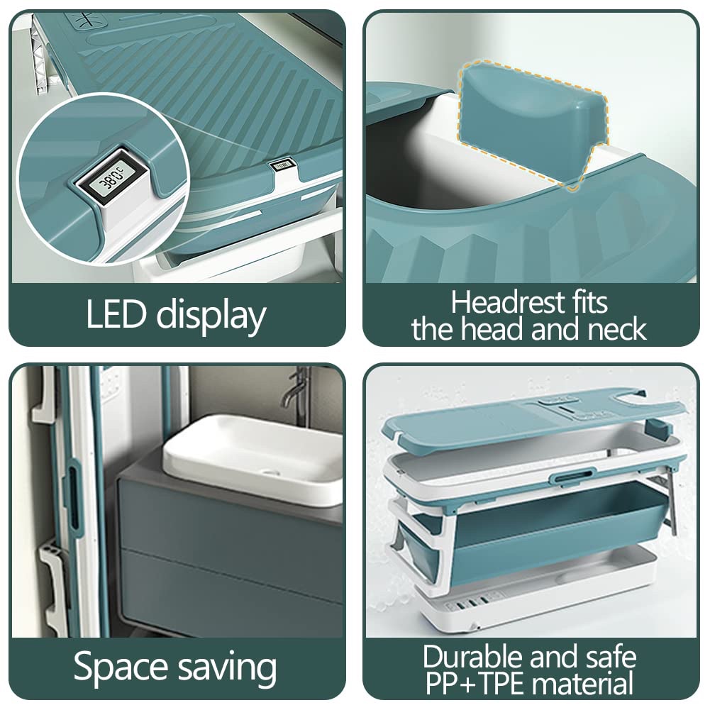 Upgrade LCD Display& Free Your Hands: Our free-standing folding bathtub designed with the lcd display and hollow out to free hands, The real-time lcd display can help you to control the real-time temperature. Hollow design can help you to use your phone or laptop freely during soaking time without removing the lid