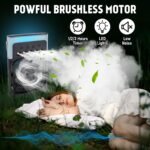 Portable Multi-Scene Design:Compact size (9″x6″x3″) with ergonomic handles and lightweight body. Ideal for patio tables, camping tents, or balcony railings. Compatible with power banks (5V/2A USB powered) for off-grid adventures.