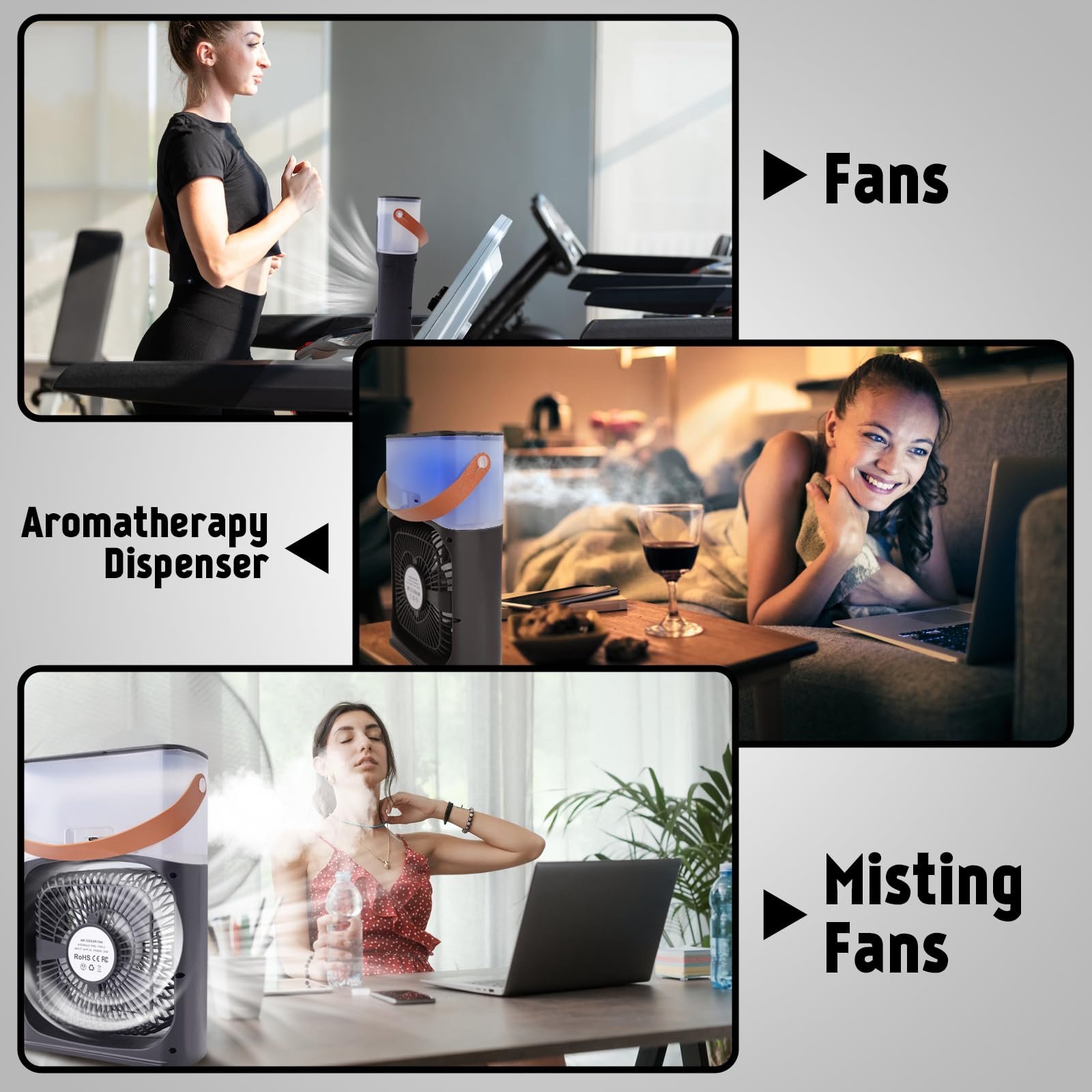 Portable Misting Fan 3-Speed with 5 Nozzles,LED Lights