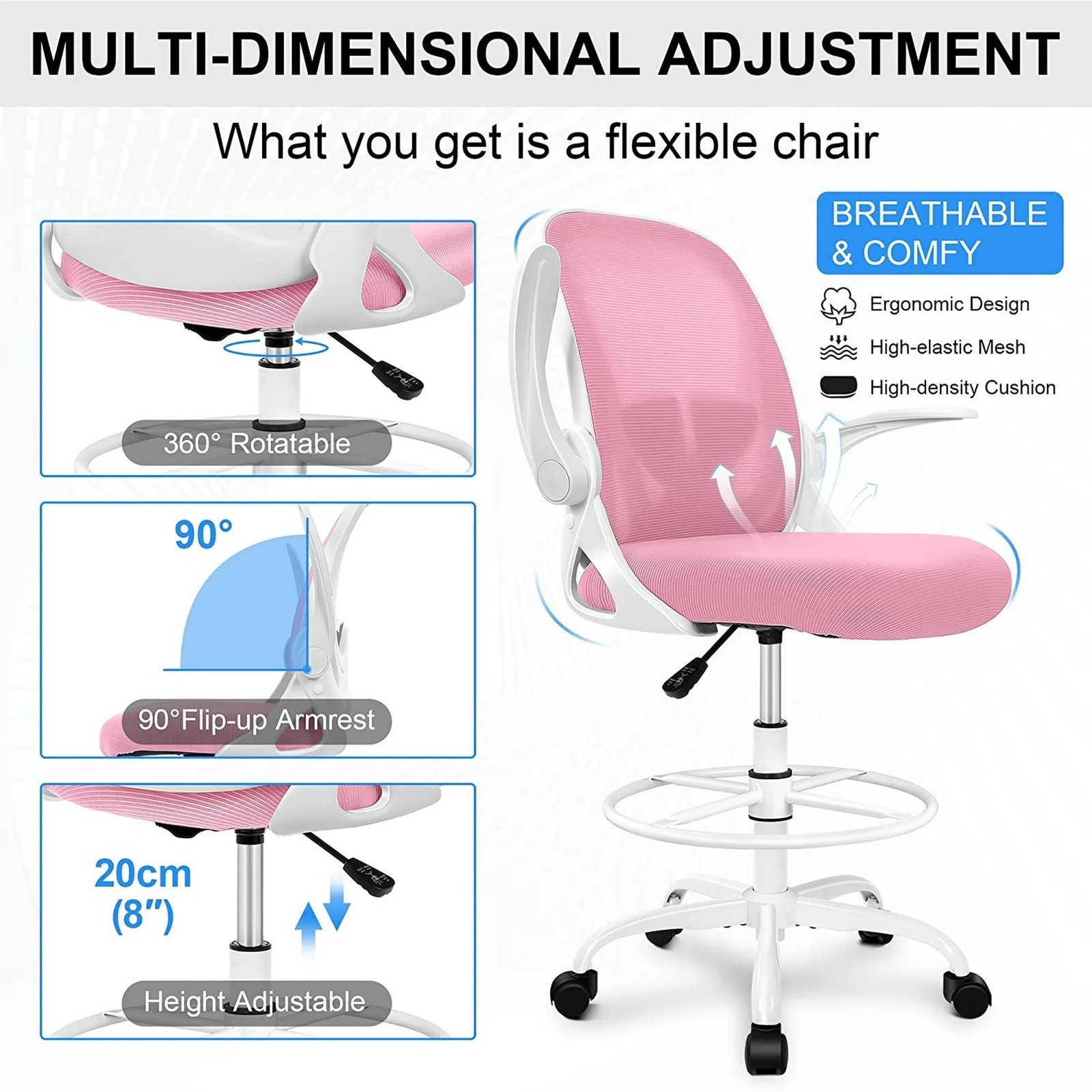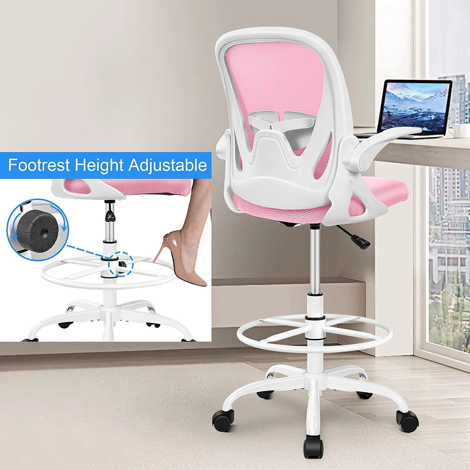 Be the first to review “Primy Drafting Chair Tall Office Chair with Adjustable Footrest Ring” Cancel reply